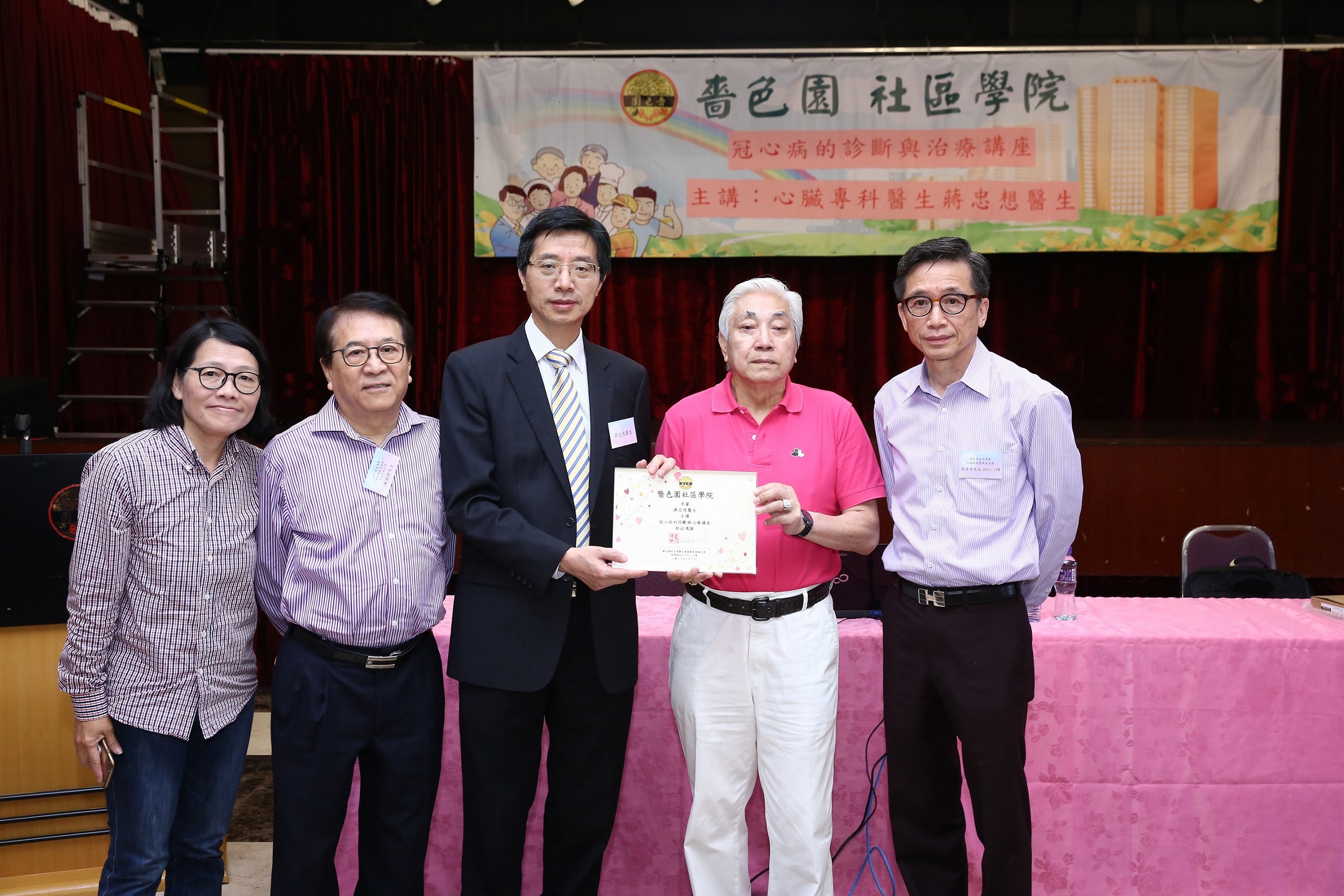 嗇色園社區學院於201763日假黃大仙祠鳳鳴樓禮堂舉辦「冠心病的診斷與治療講座」,非常榮幸邀得香港心臟專科學院前院長、伊利沙伯醫院心臟科顧問醫生蔣忠想醫生主講,近三百名義工、員工、長者和本園多位董事及社會服務轄下小組顧問及組員出席支持。並由本園副主席兼社會服務委員會主席馬澤華先生及陳燦輝董事陪同嗇色園監院李耀輝博士致送感謝狀予蔣忠想醫生。