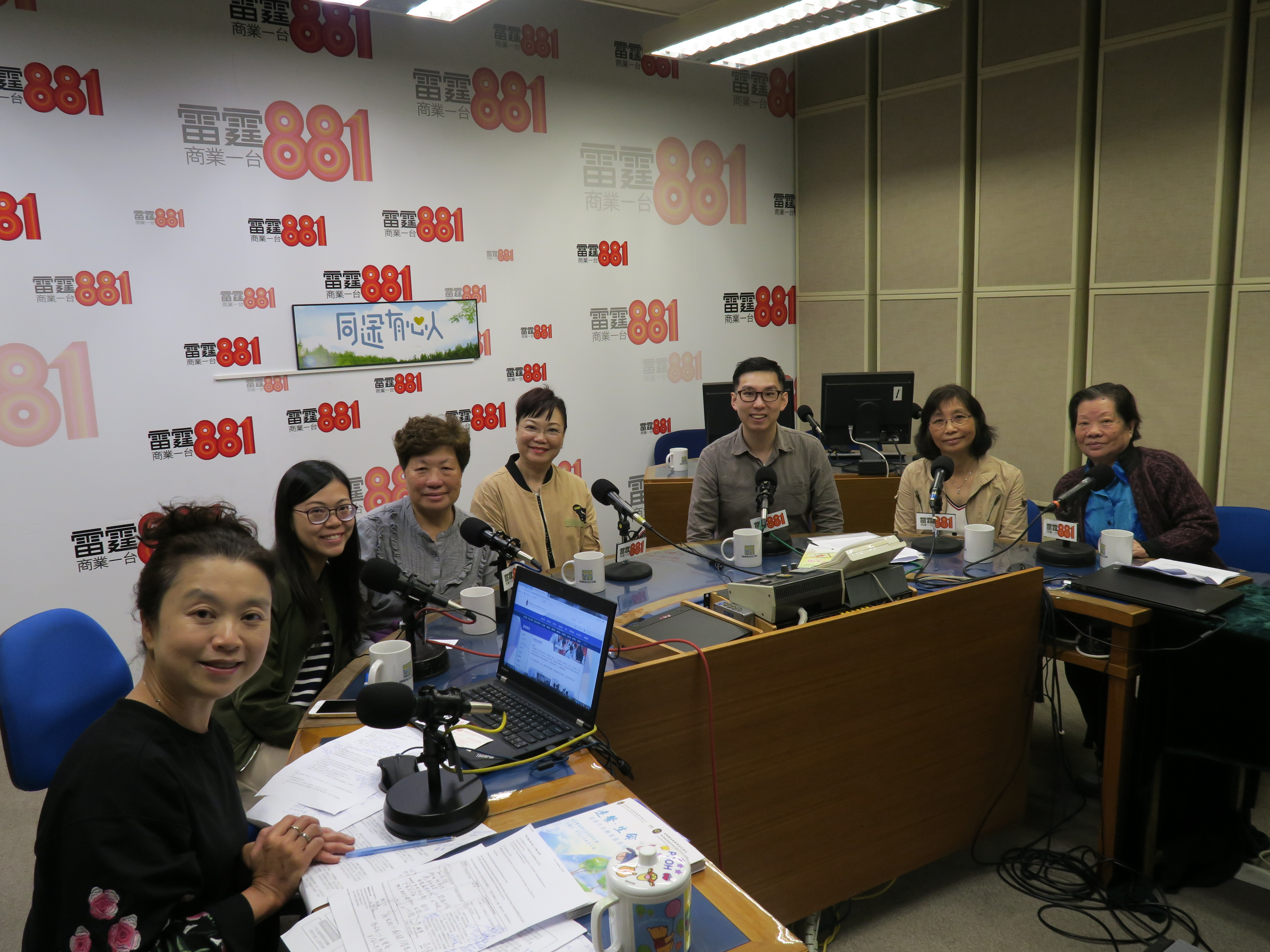 與節目主持麥詠宜小姐及其他受訪者於直播室內合照留念。