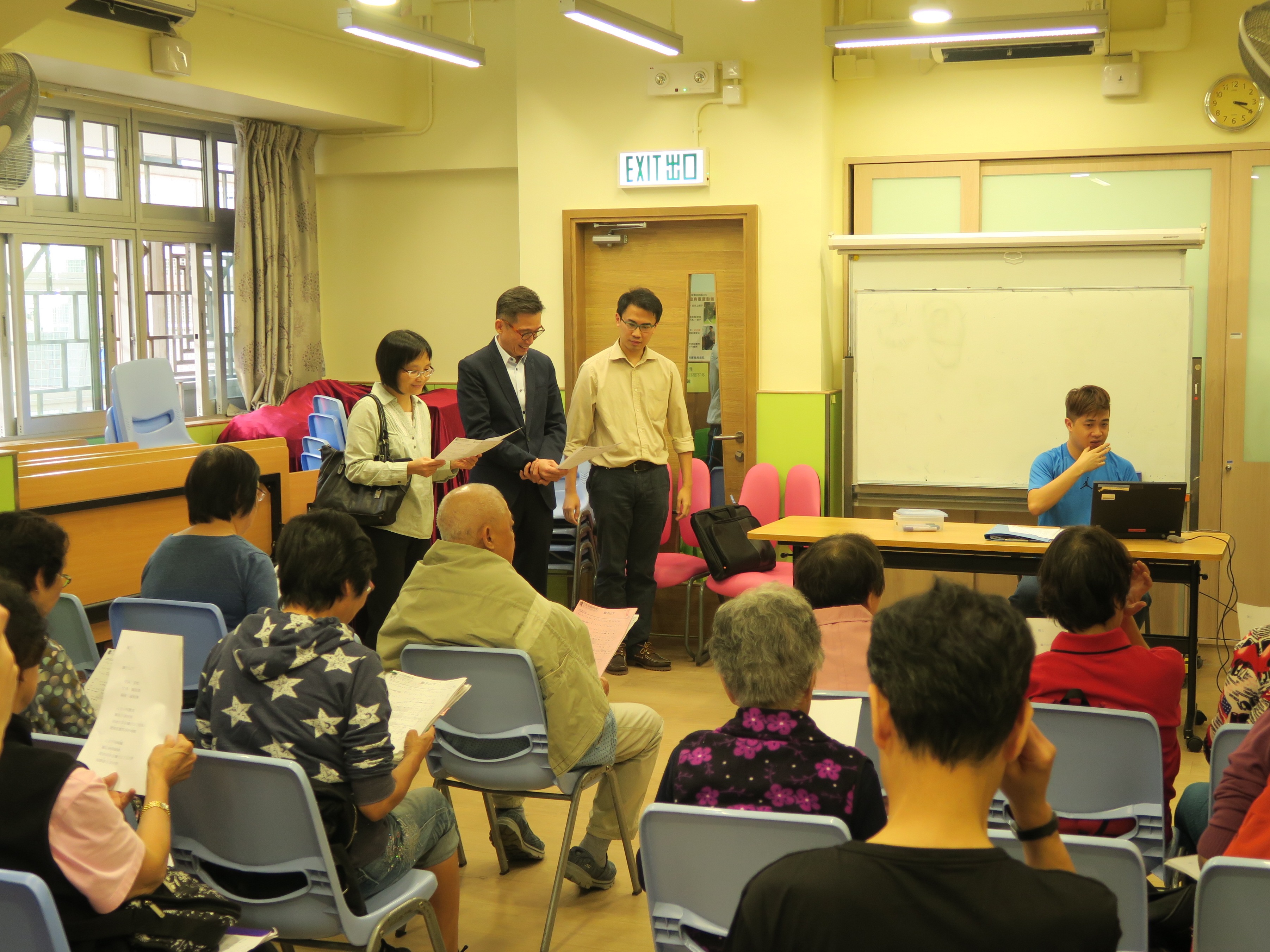 2017年10月30日,新任黃大仙及西貢區福利專員呂少英女士到訪本園可聚耆英地區中心及可慶健康服務中心,兩所中心的會員及中心服務諮詢委員會全體成員均熱烈歡迎專員。嗇色園副主席兼社會服務委員會主席馬澤華先生代表本園接待,介紹本園社會服務現況及中心服務特色。專員巡視了可聚耆英地區中心的綠色電能廚房、視察認知小組的進行情況、更與「雛聲組」的學員合唱名曲「獅子山下」,繞樑三日;後到訪剛完成翻新工程的可慶健康服務中心,瞭解中心推行長者社區照顧服務券的情況,對中心舒適的環境及完備的設施十分讚賞;專員又和本園代表互相分享彼此的服務心得,期盼為區內長者的福祉共同努力。