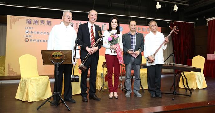 由嗇色園董事余君慶先生(左二)帶領的嗇色園經樂團為過千名長者獻唱懷舊經典金曲
