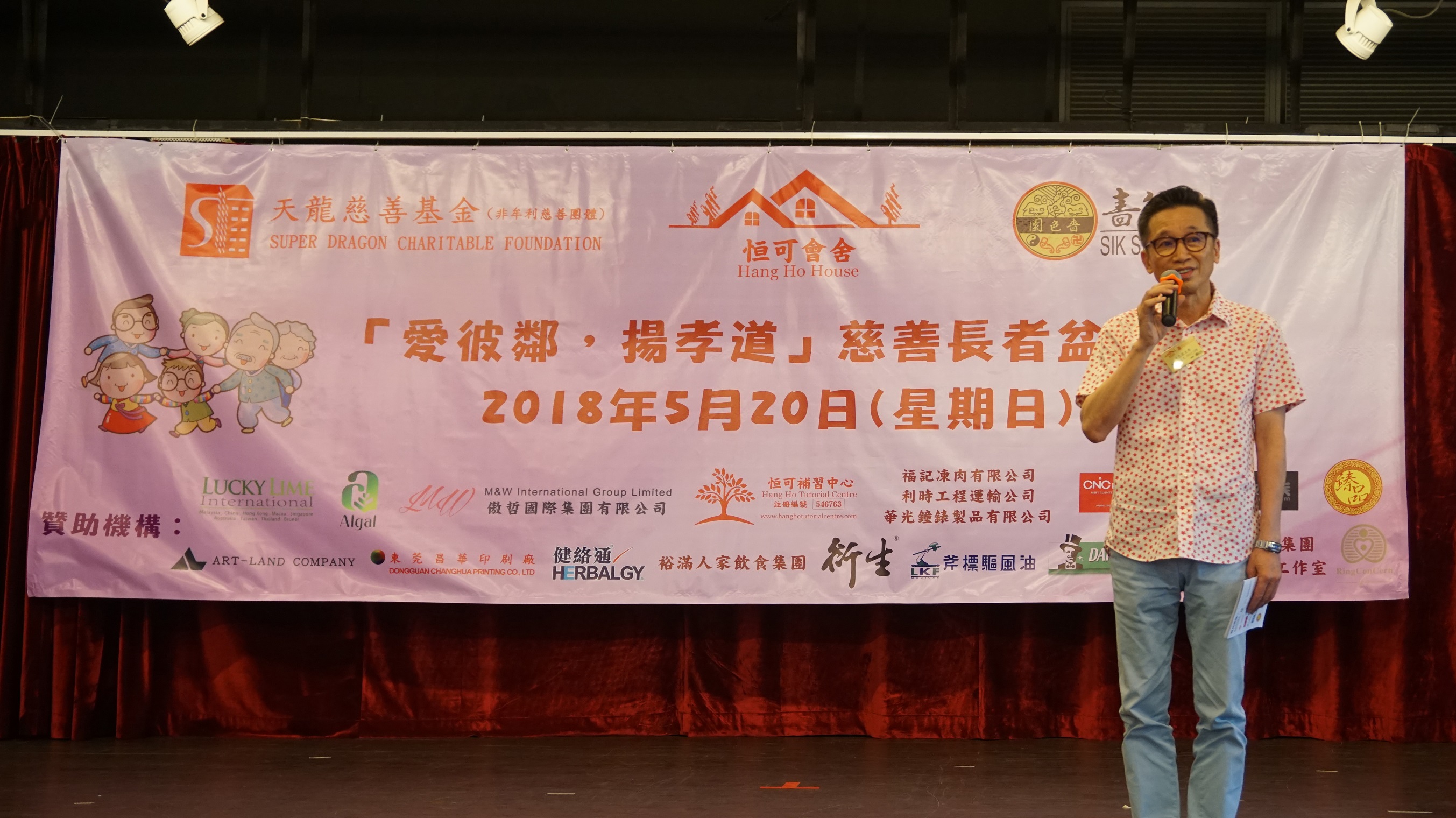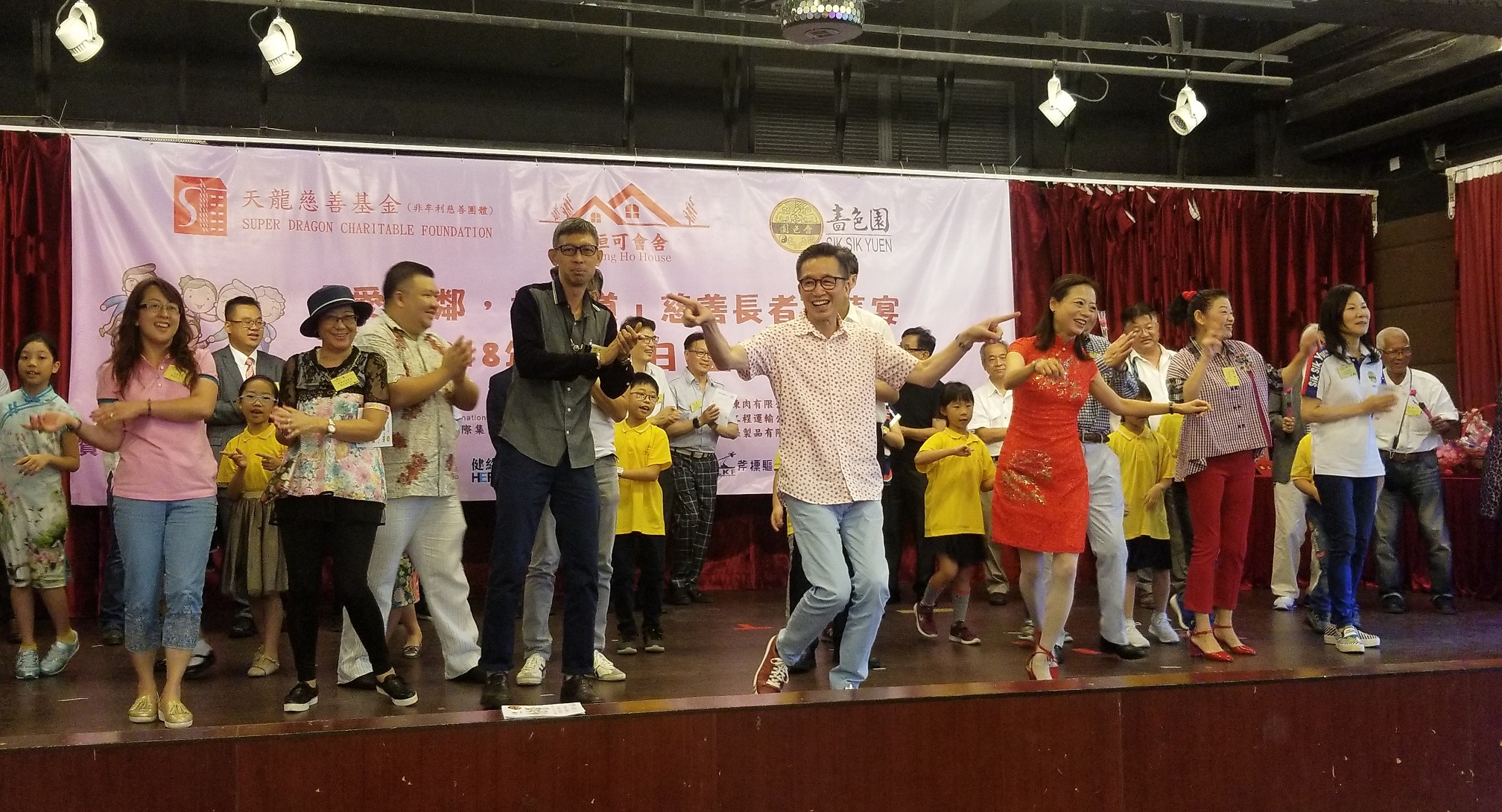 活動邀請了恒可會舍創辦人李美琪小姐、天龍慈善基金主席陳義光先生、本園主席馬澤華先生、副主席兼社會服務委員會主席黎澤森先生、副主席陳燦輝先生、副主席余君慶先生、吳家權董事、梁錦和董事、顧問陳志球先生、李潔雲女士、鄧彩琴女士、陳李淑芬女士及蕭冠美女士蒞臨參與,與長者們聚首一堂,高高興興地欣賞多個團體精彩的表演。一眾嘉賓更上台與表演者大合唱之餘,更載歌載舞,氣氛高漲。活動接近尾聲時大會向所有參加者派發福袋,並且舉行壓軸的抽獎環節,活動在一片歡笑聲中結束,參加者都盡興而歸!