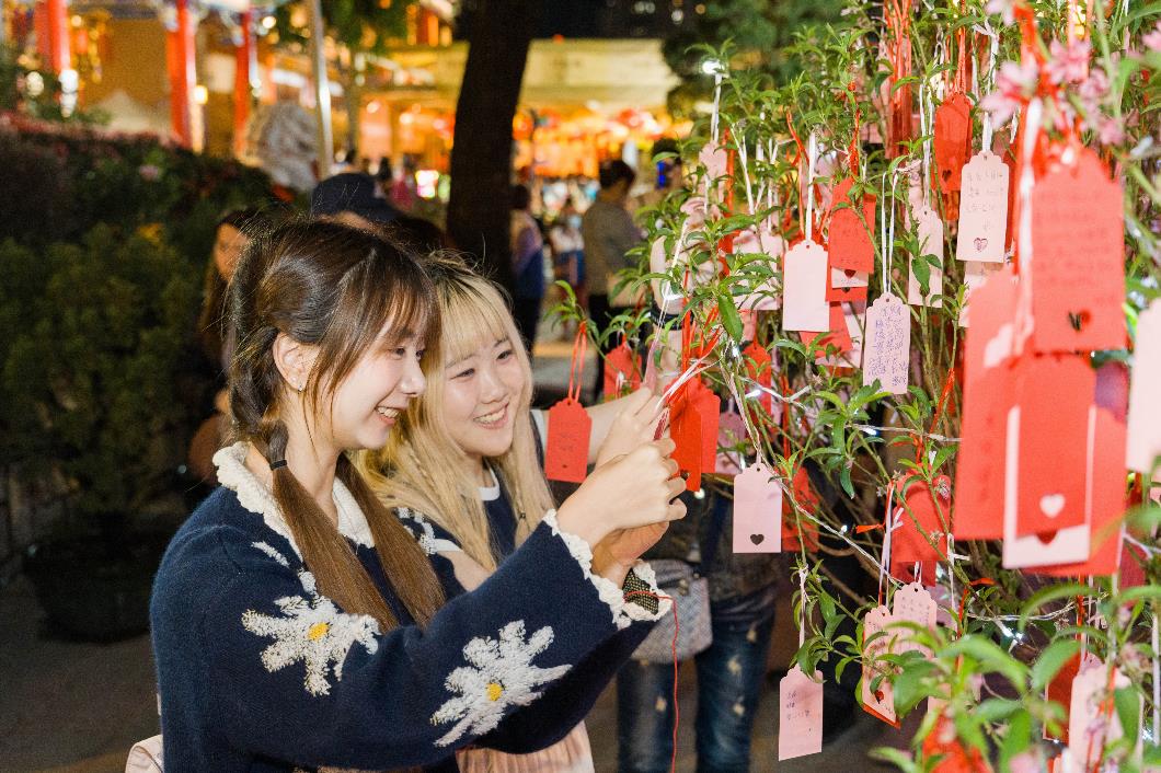 参加元宵晚会之善信在参拜月老及捐款港币$20後可请领「月老手绳」一条及获赠祈愿卡一张,供写下心愿後挂在园内玉液池及从心苑的「祈愿桃花树」上,是夜满园桃花上亦挂满善信祈愿,祈求月老协助广结善缘;亦有不少善信请领本园文创店「大仙文创」所推出的一系列精美助缘文创品,包括月老小福袋、心月之约手绳、情侣皮手绳、姻缘美满冰箱贴、月老姻缘簿造型公仔、月亮心心公仔,寓祝福於日用。